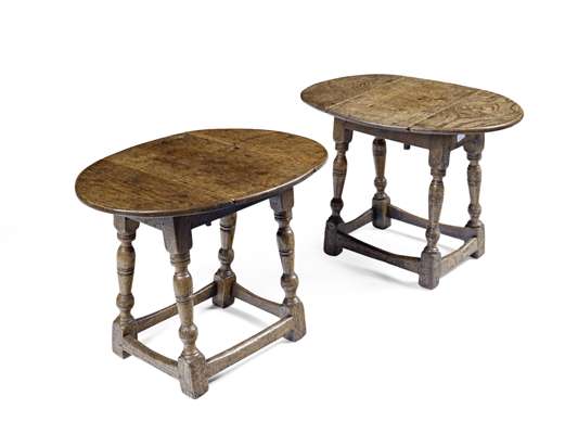 the oval tops raised on baluster turned legs united by a peripheral stretcher