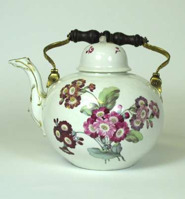 of spherical shape decorated floral sprays, gilt metal handle, impressed with an 'N' mark