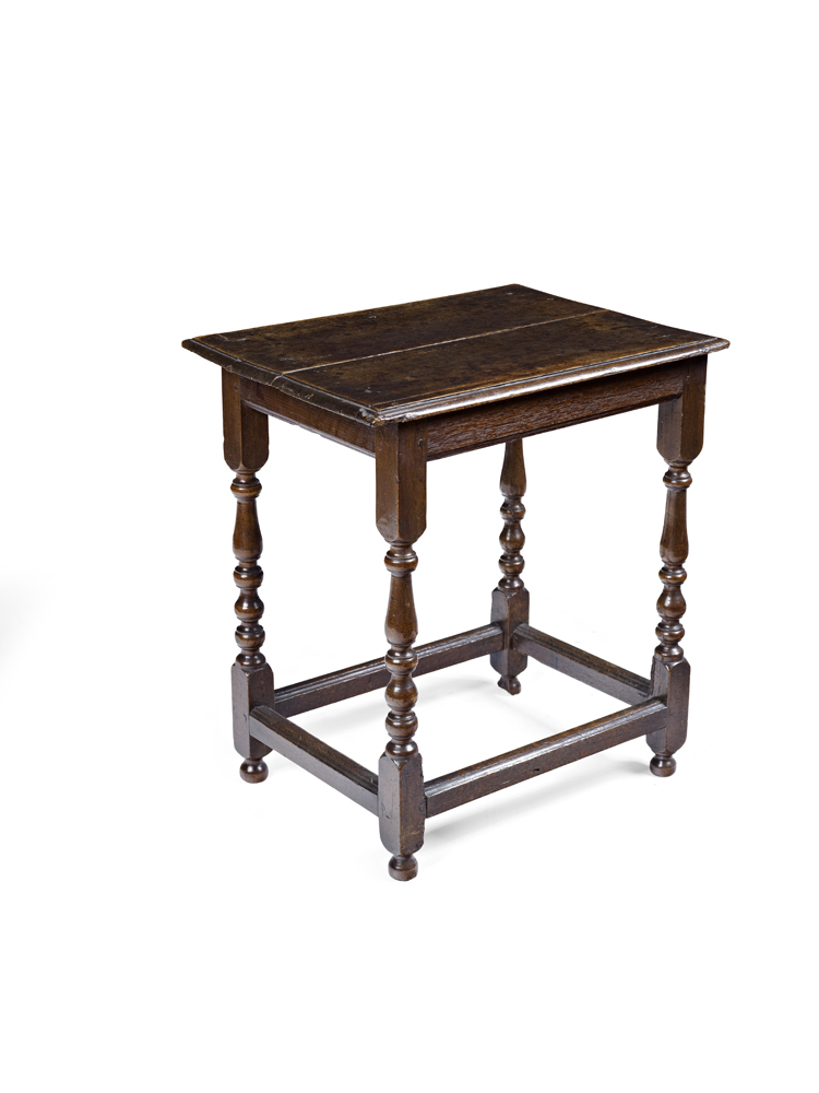 the moulded rectangular top raised on baluster turned legs united by a peripheral stretcher