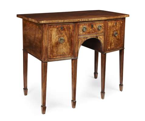 SMALL GEORGE III MAHOGANY AND INLAID BOWFRONT SIDEBOARD