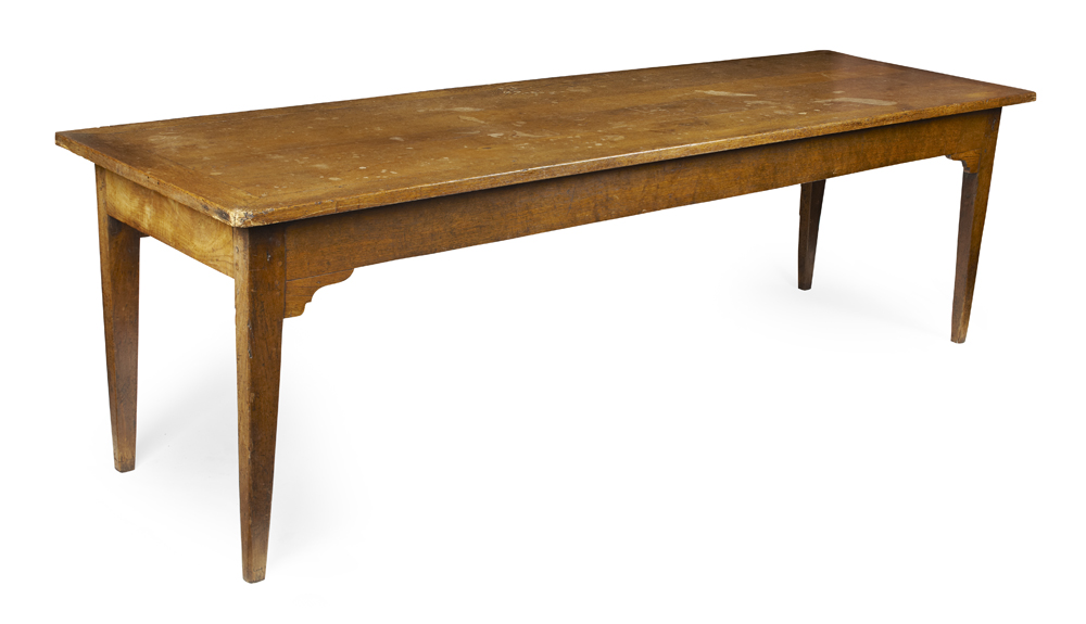 the rectangular planked top above plain frieze on square tapered legs