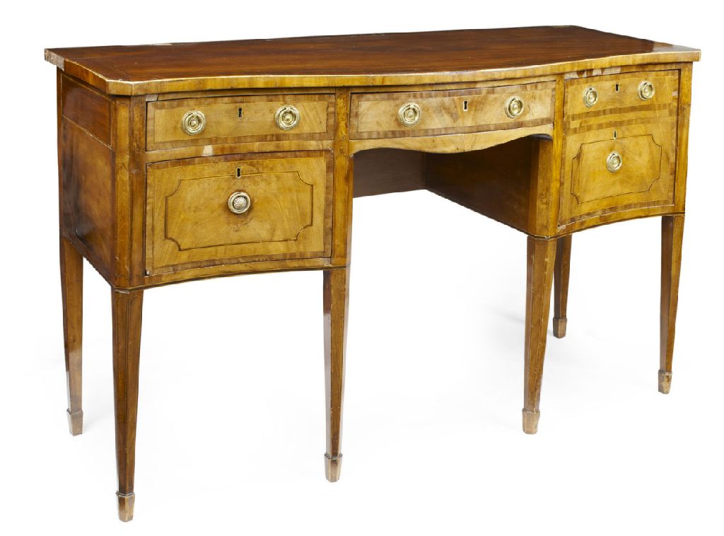 GEORGE III MAHOGANY AND INLAID SERPENTINE SIDEBOARD
