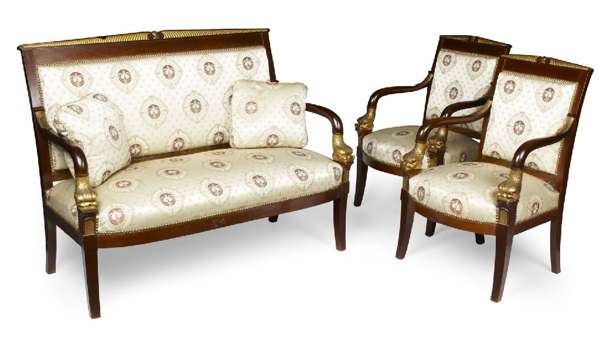 FRENCH EMPIRE STYLE MAHOGANY AND PARCEL SALON SUITE