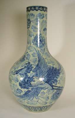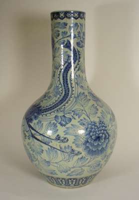 CHINESE BLUE PAINTED PORCELAIN BOTTLE VASE