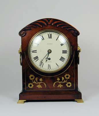 REGENCY MAHOGANY AND BRASS INLAID MANTEL CLOCK