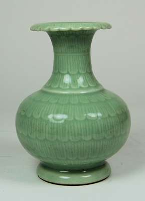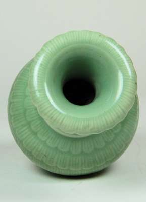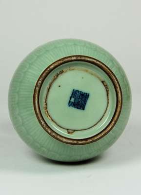of baluster form, relief decorated with bands of leaves, bears blue Qianlong mark to base