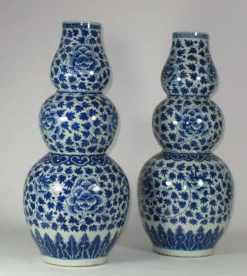 PAIR OF CHINESE TRIPLE GOURD VASES