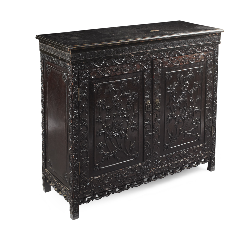CHINESE CARVED ROSEWOOD SIDE CABINET