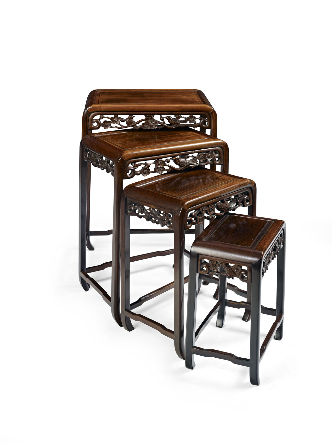 SET OF CHINESE ROSEWOOD QUARTETTO TABLES