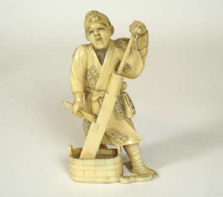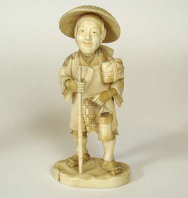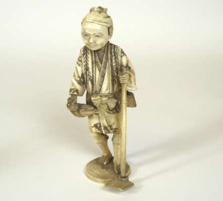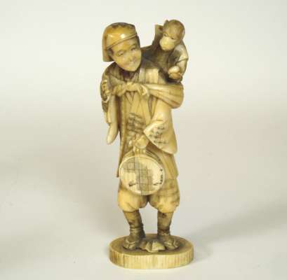 FOUR JAPANESE CARVED IVORY FIGURES
