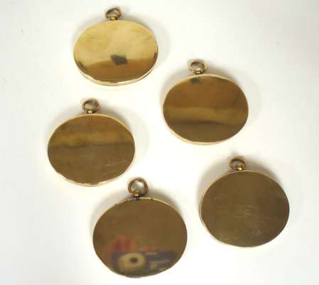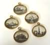 each oval view painted en-grisaille on ivory depicting various Indian landmarks including the Taj Mahal, Qutub Minar, Red Fort, and Humayun's Tomb, in gilt metal frames