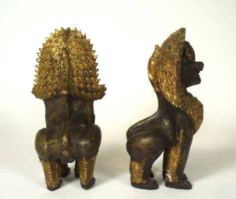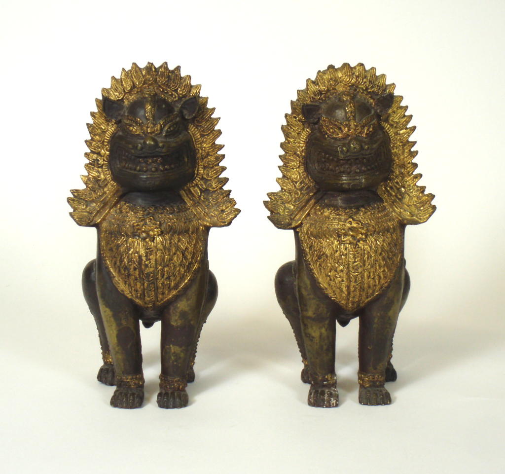 PAIR OF SOUTH EAST ASIAN BRONZE LIONS