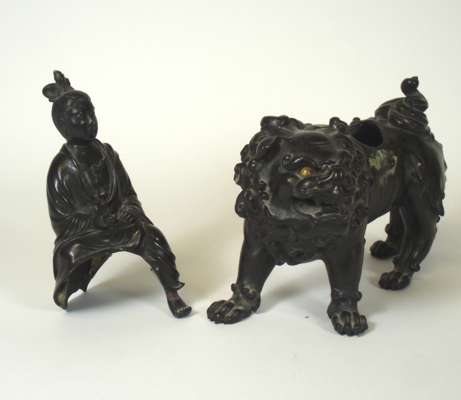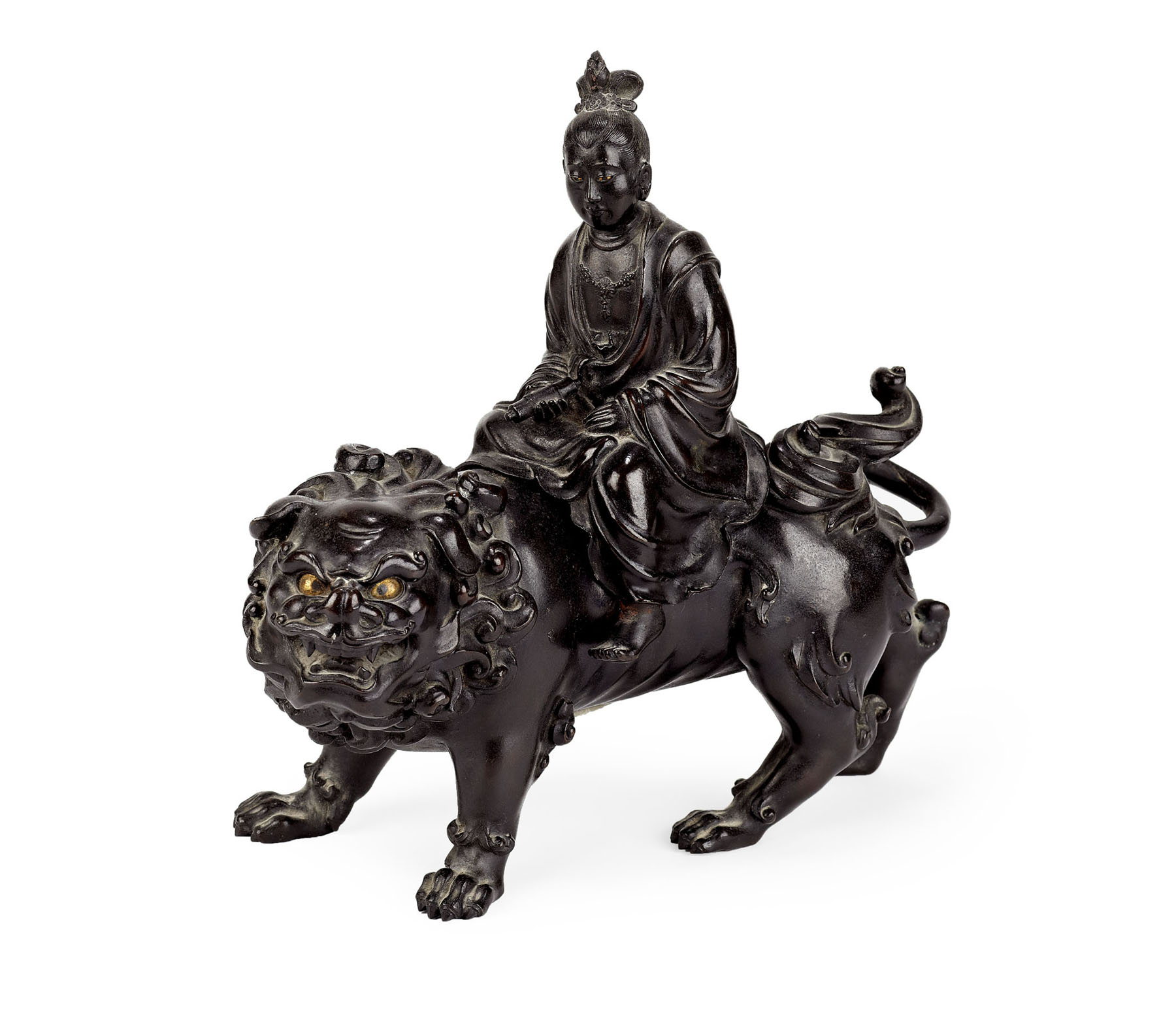 JAPANESE BRONZE FIGURE OF A BODHISATTVA ON A LION