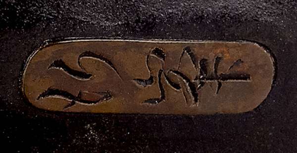 the bodhisattva, probably Monju, in seated position with one leg crossed and holding a scroll, the lion standing on all four legs, signed panel to chest