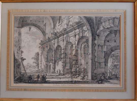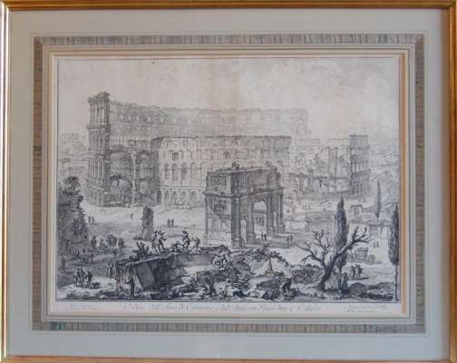 comprising: Veduta della Curio Ostilia; Veduta del Sepolcro della Famiglia Plauzia; Veduta dell' Arco di Costantine e dell' Anfiteatro Flavio detti il Coloseo; and Tempi del Sole e della Luna, o come altri, dIside e Serapi