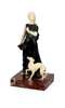 the lady standing with her head pointing to sinister, the dog standing with one leg raised, on a rouge marble rectangular plinth base