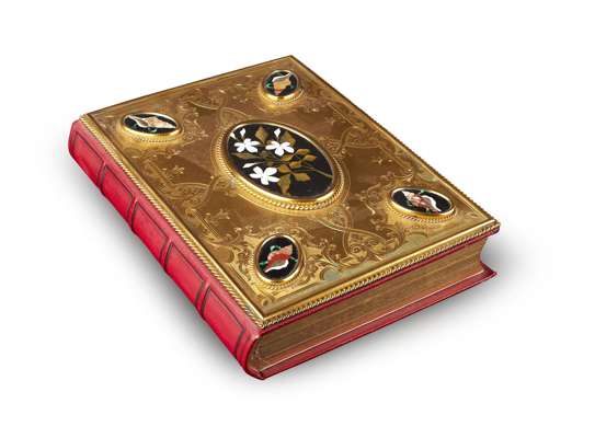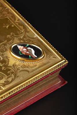 VICTORIAN GILT METAL AND PIETRA DURA MOUNTED ALBUM