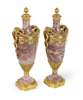 PAIR OF FRENCH GILT BRONZE MOUNTED PINK SERPENTINE MARBLE VASES