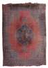 the red field with central grey-blue lozenge medallion suspending pendants, similar spandrels, within grey-blue foliate vine border between various bands