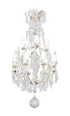 ROCOCO STYLE GLASS AND GILT METAL TWELVE LIGHT CHANDELIER