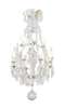 with two tiers of scrolling gilt metal candle arms hung with moulded glass drops and spires, some with religious motifs, ending in a large ball drop finial