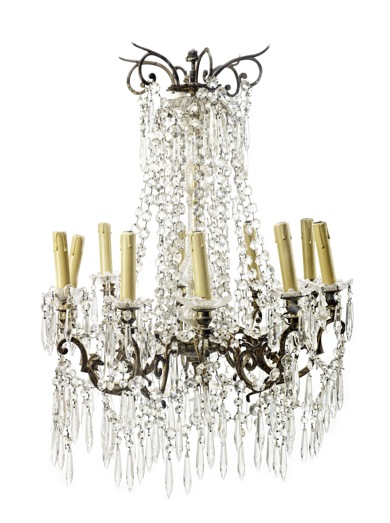 TWELVE LIGHT MOULDED AND CUT GLASS CHANDELIER