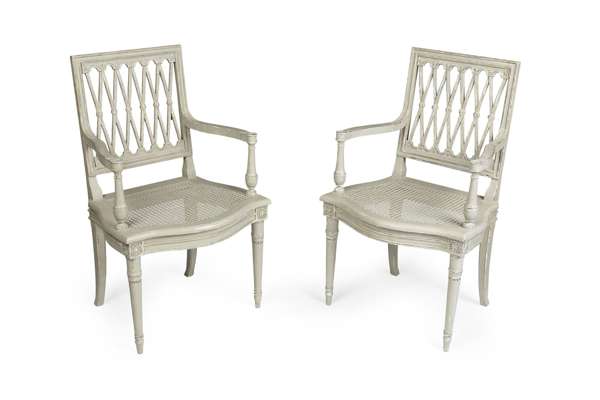 PAIR OF FRENCH GREY PAINTED ARMCHAIRS