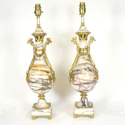 PAIR OF LOUIS XV STYLE MARBLE AND GILT BRONZE LAMPS