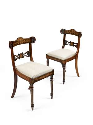 FINE SET OF EIGHT CHARLES X ROSEWOOD AND MARQUETRY DINING CHAIRS
