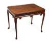 the rectangular top with re-entrant corners, slight raised lip, all above a plain frieze and shaped apron, raised on cabriole legs terminating in pad feet