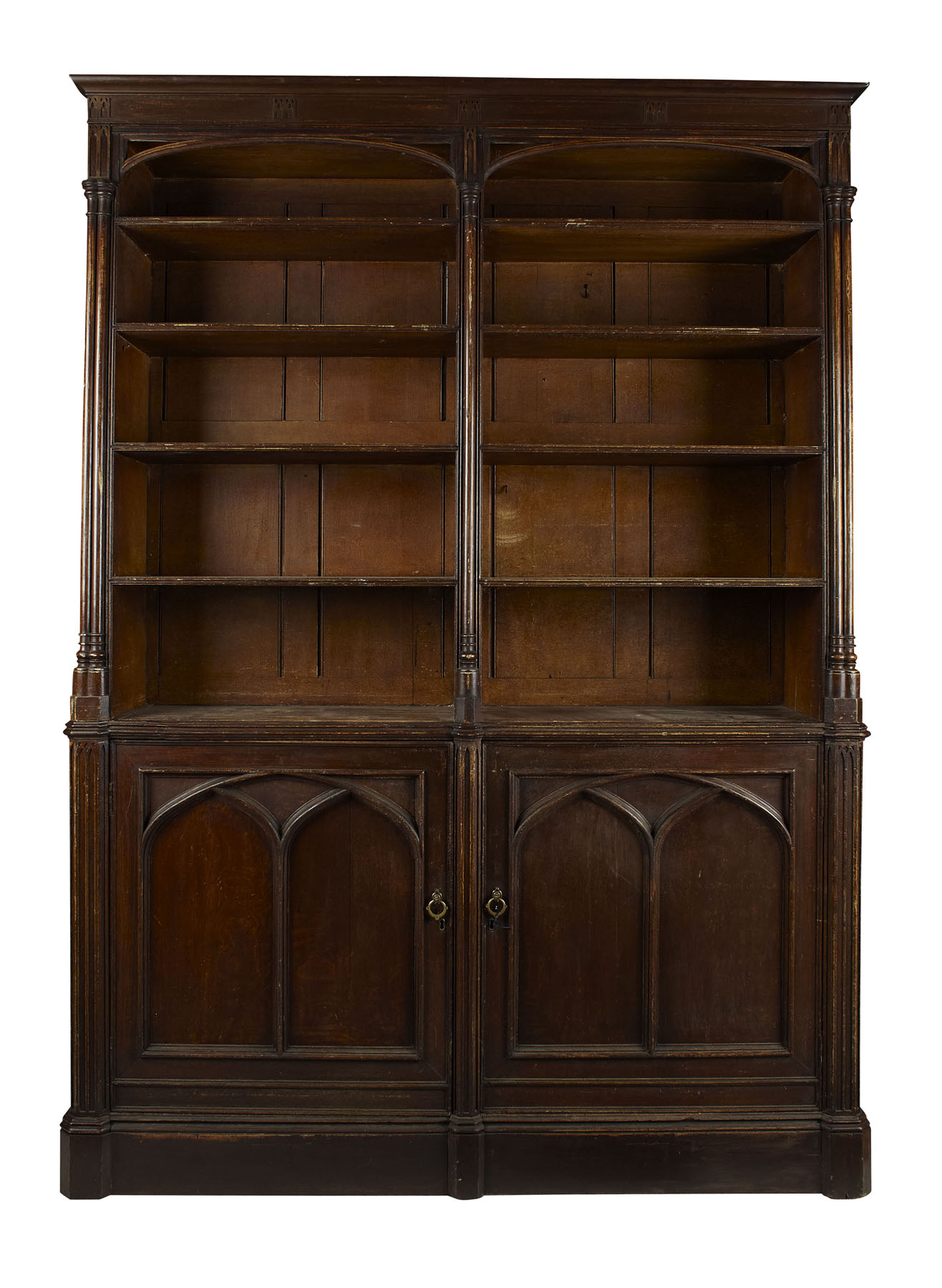 VICTORIAN STAINED OAK GOTHIC REVIVAL LIBRARY BOOKCASE