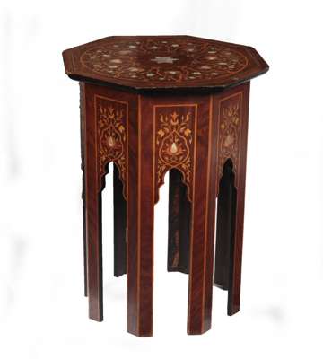 IZNIK MAHOGANY MARQUETRY AND MOTHER-OF-PEARL INLAID OCCASIONAL TABLE