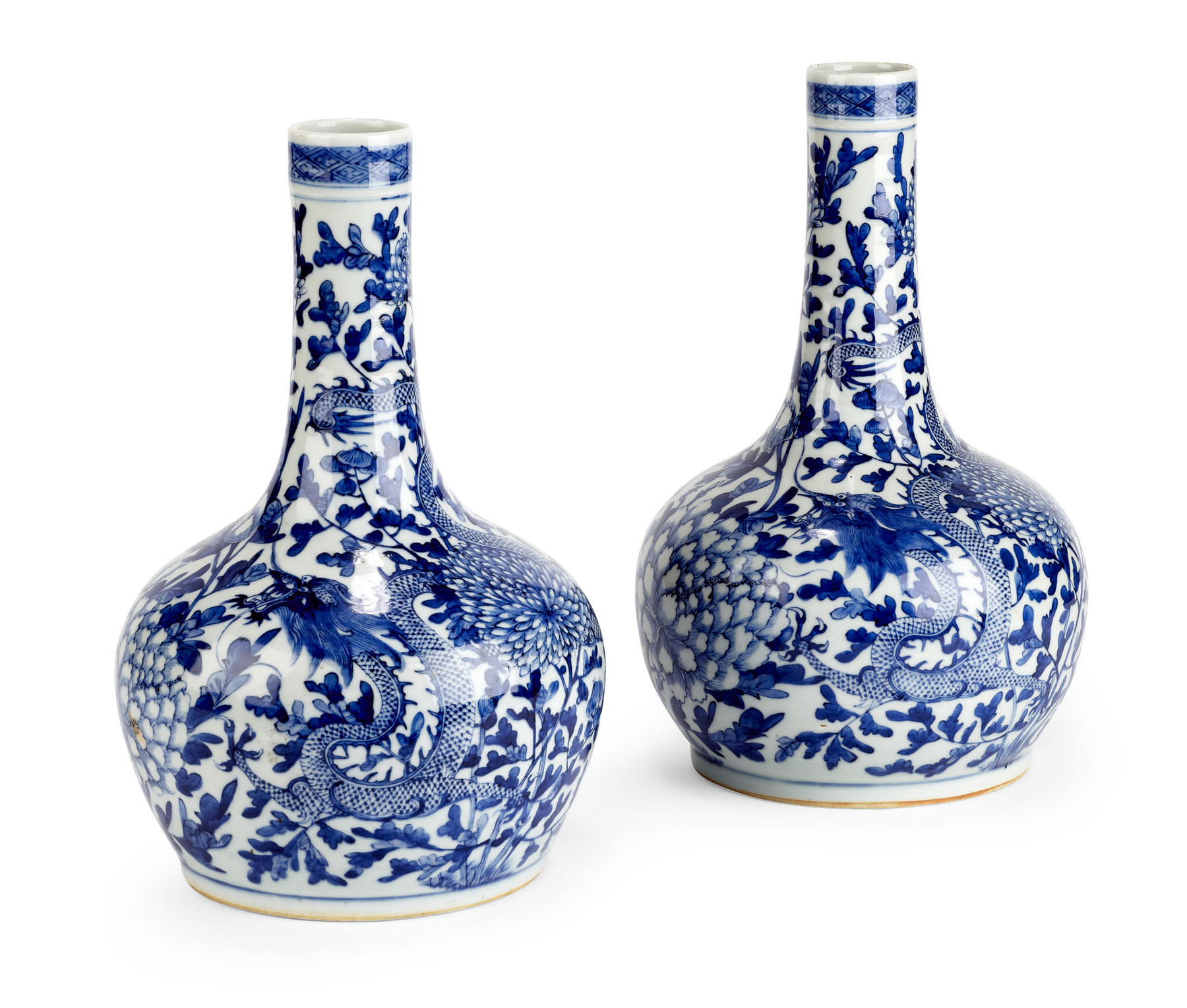 PAIR OF CHINESE BLUE PAINTED BOTTLE VASES