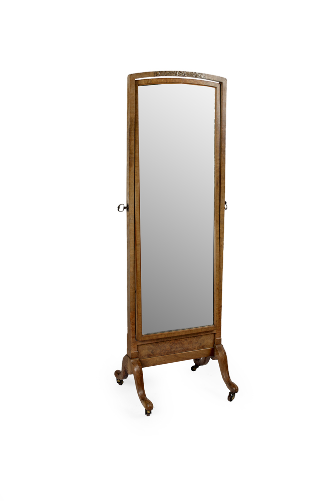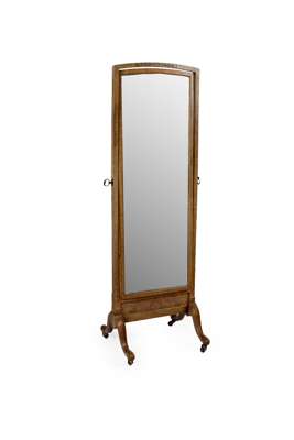 WHYTOCK & REID OAK, WALNUT AND BURR WOOD CHEVAL MIRROR