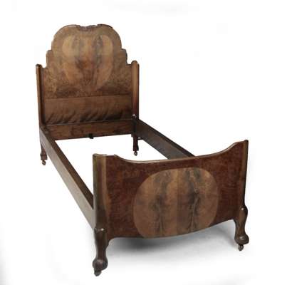 PAIR OF WHYTOCK & REID WALNUT AND BURR WOOD SINGLE BEDS