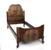 the high shaped arch headboards with a round moulded edge and centred by carved stylised floral panels, with conforming footboards and rails; together with original box frame and horsehair mattresses