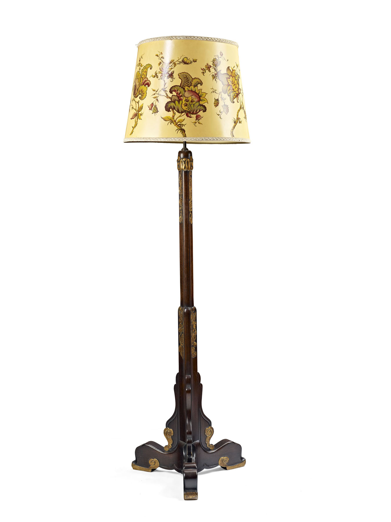 WHYTOCK & REID MAHOGANY AND PARCEL GILT STANDARD LAMP
