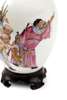 decorated with Zhong Kui and two attendants, overglaze red four character mark within a double square border, wood stand