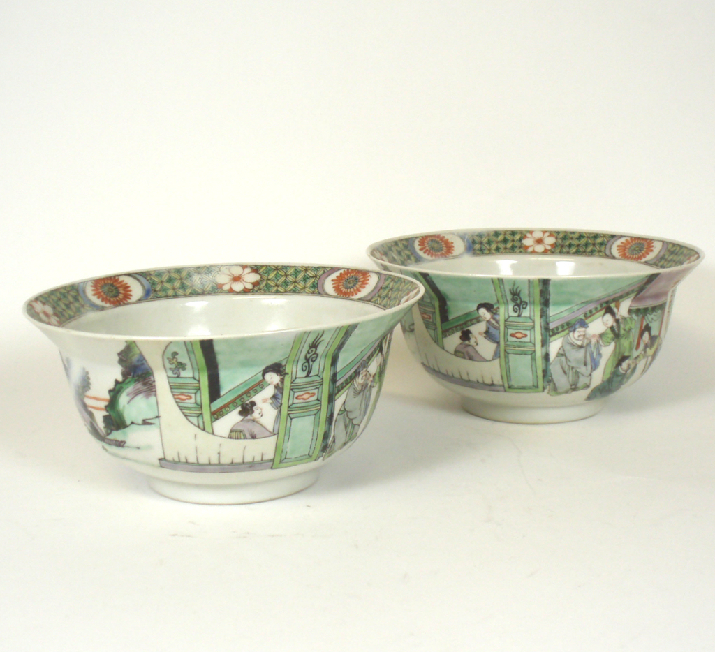PAIR OF CHINESE FAMILLE VERTE PORCELAIN BOWLS