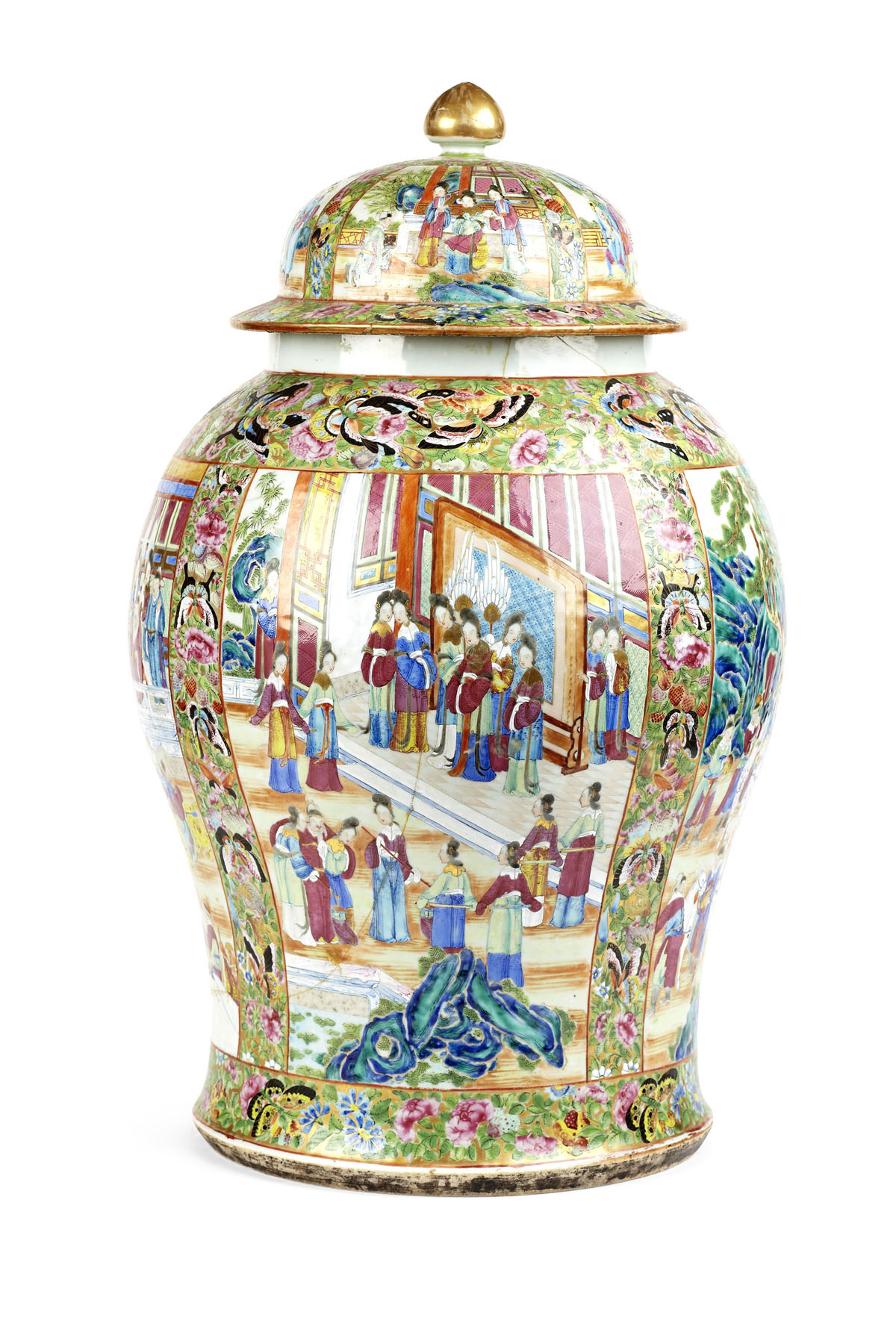 CHINESE CANTON FAMILLE ROSE PORCELAIN TEMPLE JAR AND COVER