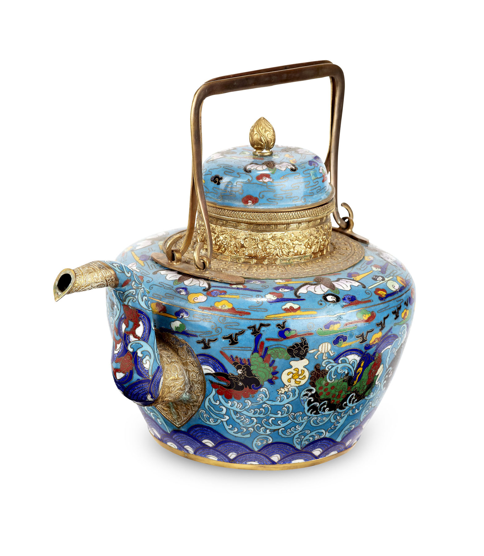 CHINESE CLOISONNÉ ENAMEL TEA KETTLE AND COVER