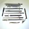 one William IV the other George V; together with eight various bayonets; an Asian parang; and a knife with decorated grip and wide corroded blade (12)