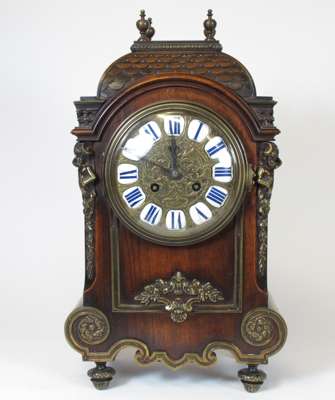 FRENCH WALNUT AND GILT METAL MOUNTED MANTEL CLOCK