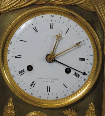 FRENCH EMPIRE GILT BRONZE MANTEL CALENDAR CLOCK
