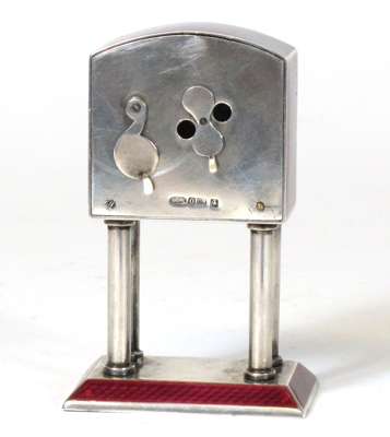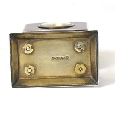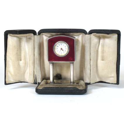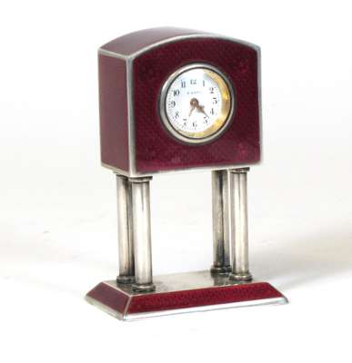CONTINENTAL CASED SILVER AND ENAMEL DESK CLOCK