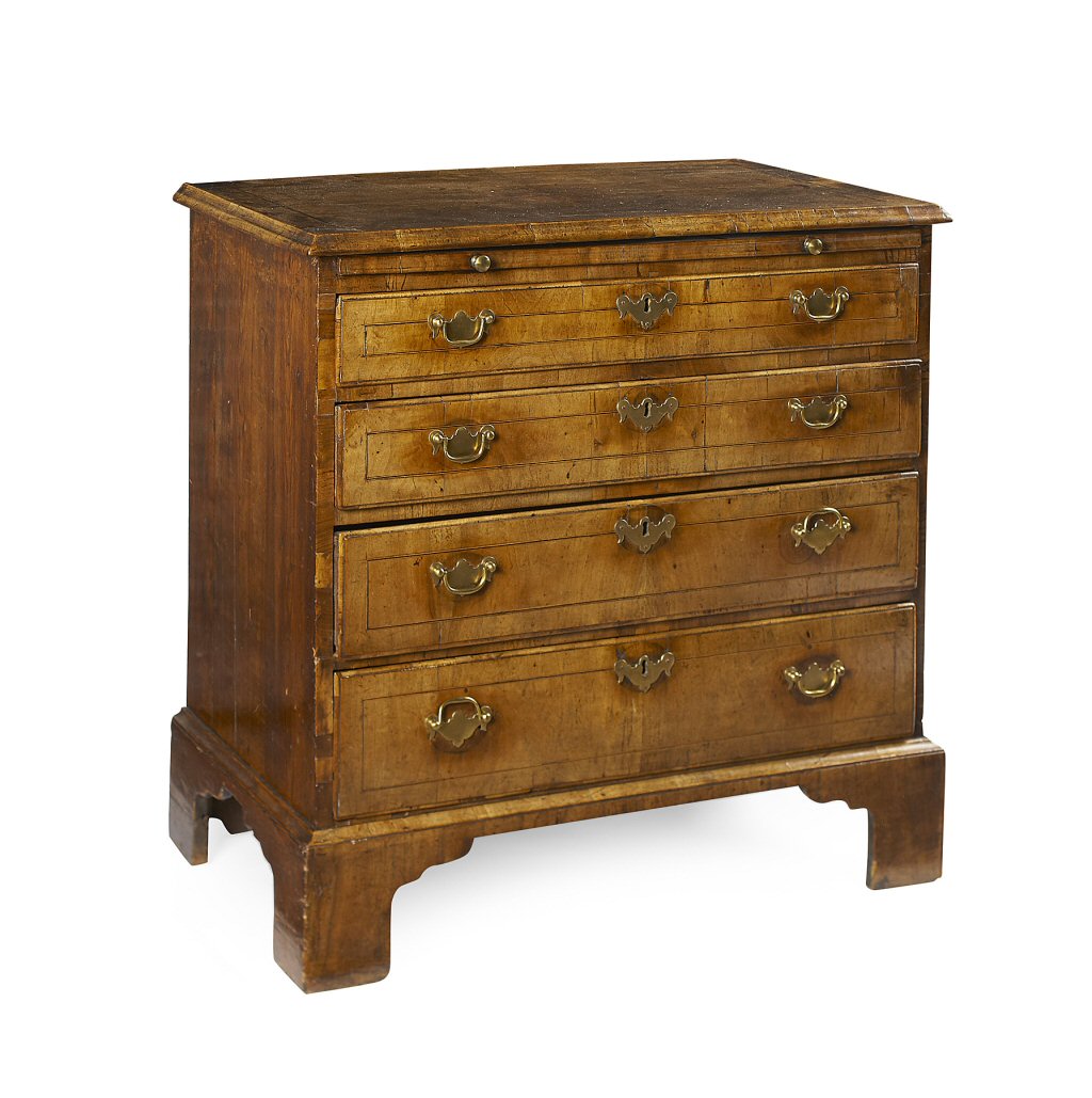 GEORGE I WALNUT INLAID CHEST OF DRAWERS
