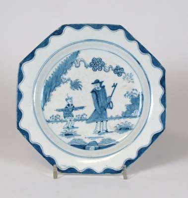 BOW 'GOLFER AND CADDY BOY' PATTERN BLUE PAINTED PLATE
