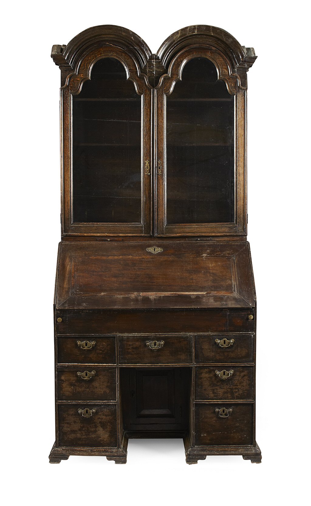 GEORGE I OAK DOUBLE DOME BUREAU BOOKCASE