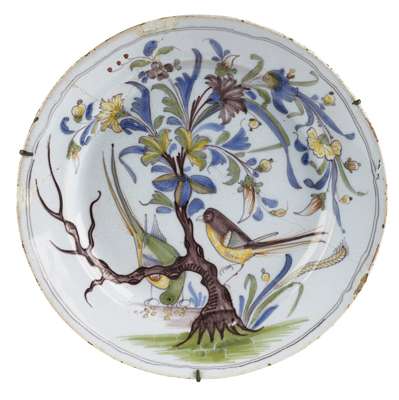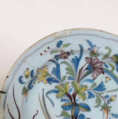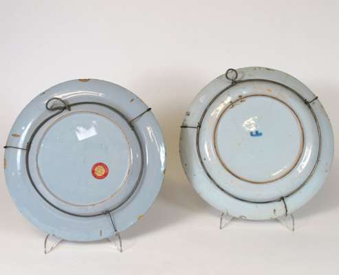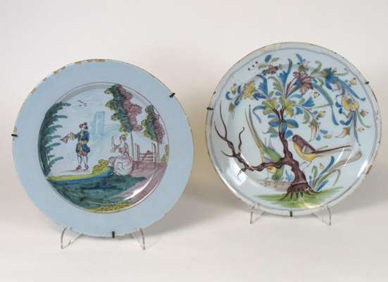 TWO ENGLISH DELFT POLYCHROME PAINTED PLATES