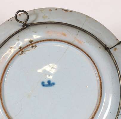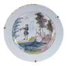 comprising: a plate with birds on a flowering branch, 'F' mark to verso, 27cm diameter; and a woman waving goodbye to her husband, in a landscape, 26cm diameter (2)